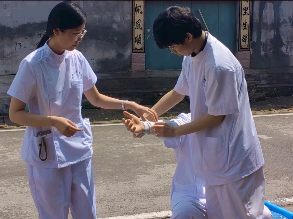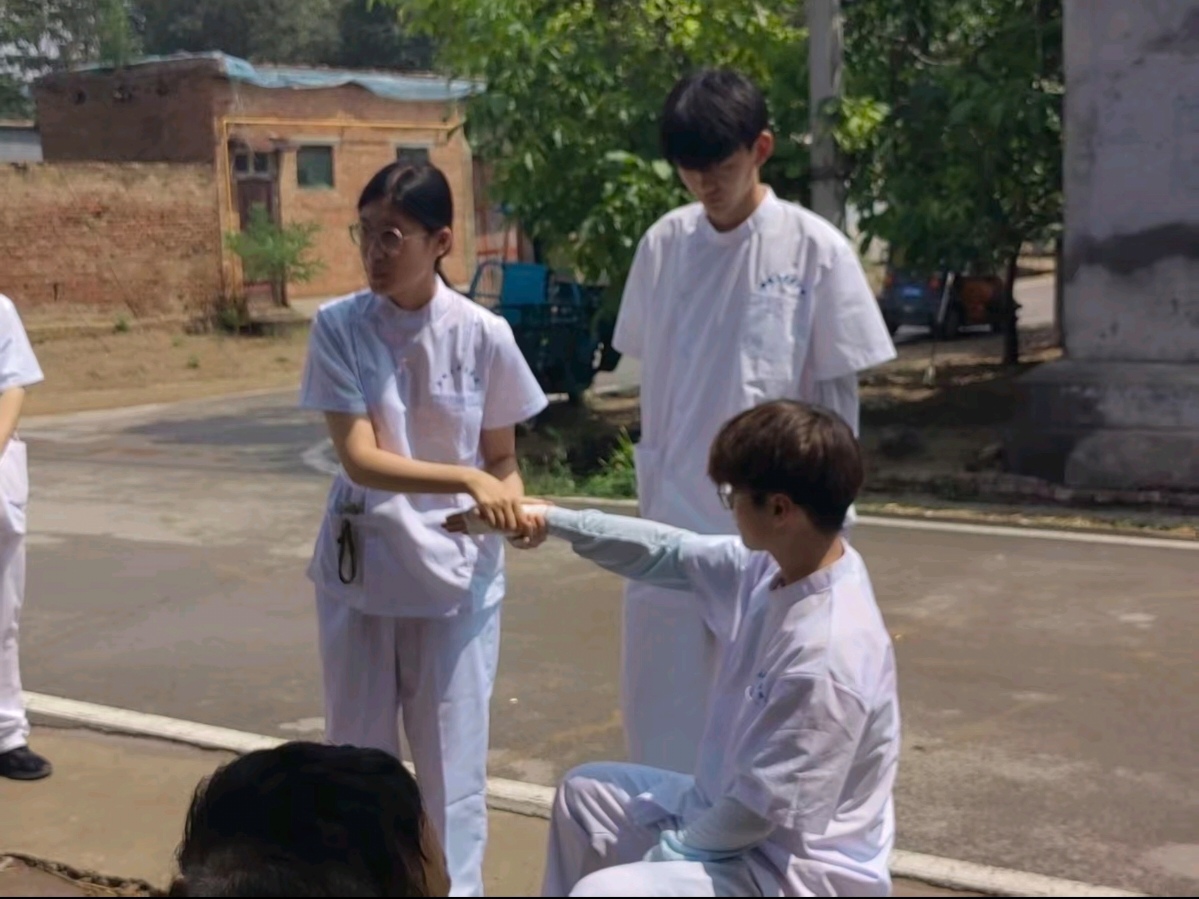 2025年6月28日跟着队伍去西八庙村做急救宣讲,我和同伴负责配合主讲人演示环形包扎、螺旋包扎这些实操。出发前我们对着纱布又练了好几遍,从怎么捏绷带角,到缠绕时的松紧度,都互相盯着纠正,就怕演示时出纰漏。